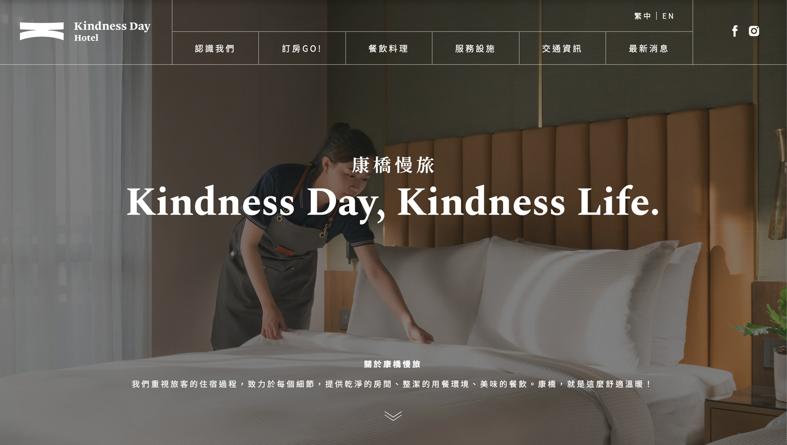 Kindness康橋慢旅網站,與台北設計公司協同合作,丕績負責前、後端開發。康橋慢旅是康橋商旅暨康橋大飯店的新品牌,位於台南中西區。開發亮點:首頁特殊效果開發、配合設計公司高質量的畫面設計,讓網站擁有豐富的資訊呈現,仍保持視覺的美感呈現。